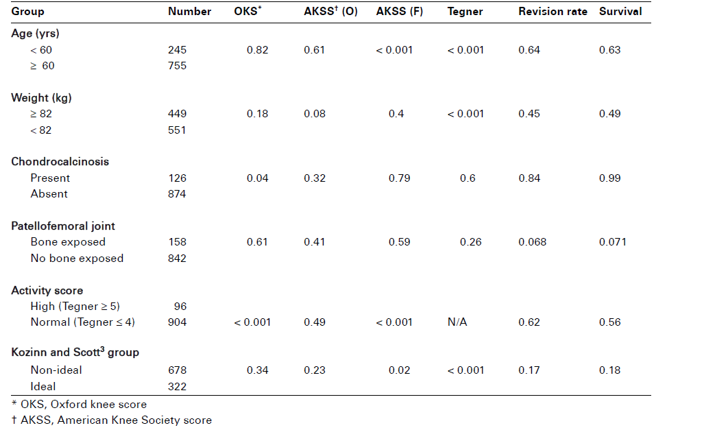 After following these strict criteria, Sah and Scott et al. reported improved survival. However, with improvements in clinical knowledge, surgical techniques and implants, these indications have become too strict. And it is mainly based on their clinical experience using fixed unicondylar prostheses.